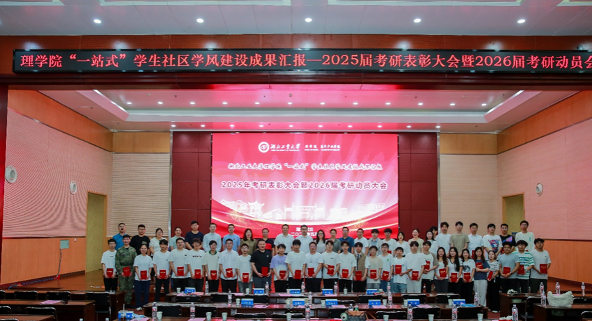 (杜雨默/文,秦洁冰/图)为深化学风建设,表彰考研先进典型,激励学生踔厉奋发,5月28日下午,理学院在图书馆报告厅隆重举行“一站式”学生社区学风建设成果汇报—2025届考研表彰大会暨2026届考研动员大会,校党委常委李政颖,学院领导班子成员,学生工作部辅导员素质发展中心主任李璟璐、系部书记、主任,班导师和学生代表出席大会,会议由学院党委副书记陈彦君主持。